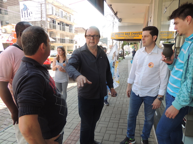 O comércio do centro de Venâncio Aires, da rua Osvaldo Aranha, recebeu, na manhã de ontem, a visita do candidato a prefeito, o professor universitário, Vinícius Medeiros, e do vice, o empresário, Adilor Adams. Eles fazem parte da coligação ‘União Pela Renovação de Venâncio’ que reúne os partidos PSDB, PMDB e Democratas (DEM).