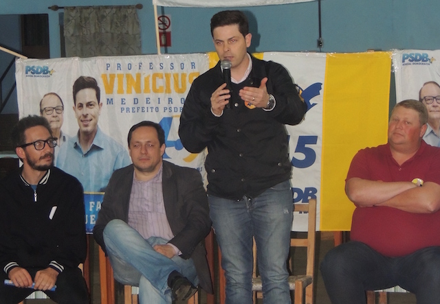 Na noite de segunda-feira, 29, a coligação ‘União pela renovação de Venâncio’ que reúne os partidos PSDB, PMDB e Democratas (DEM) realizou reunião política no interior. A comunidade de Linha Cecília, que faz parte do 4° distrito do município, abriu as portas para receber o candidato a prefeito, o professor universitário, Vinícius Medeiros, e a vice, o empresário Adilor Adams.