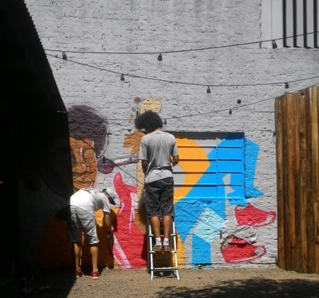 Durante a última semana, os grafiteiros Digo Almeida de 27 anos e Pepe Fontanari de 28 deram ainda mais vida ao espaço, através de suas artes manuais. A dupla vinda de Santa Cruz do Sul trampou na quarta-feira, 22, e quinta-feira, 23, nas paredes do Anexo, produzindo graffitis ligados à música.