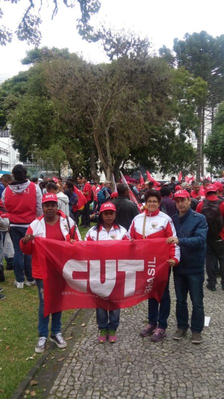 A vice-presidente Eraci Becker está em frente ao neste momento na praça Santo Andrade, um pouco antes do prédio da sede da Justiça Federal do Paraná, onde será o depoimento. Acompanhada dos colegas Patrícia Lopes, Zaira da Silva e Marcos de Oliveira, a sindicalista participa do ato em apoio ao ex-presidente e avalia positivamente o movimento. “Está tudo tranquilo, um ato pacífico com milhares de pessoas. Estamos aguardando a chegada dele”, explica.