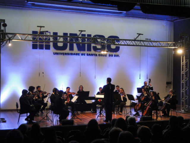 Na próxima quarta-feira, dia 7 de junho, a Orquestra de Câmara Unisc dará início aos concertos do Circuito Orquestra da Unisc, projeto aprovado junto ao Ministério da Cultura, com patrocínio da Alliance One e da Universal Leaf Tabacos. A apresentação terá repertório tradicional de orquestra de câmara e ocorrerá na Igreja Evangélica (IECLB) de Venâncio Aires, a partir das 20h, com entrada franca.