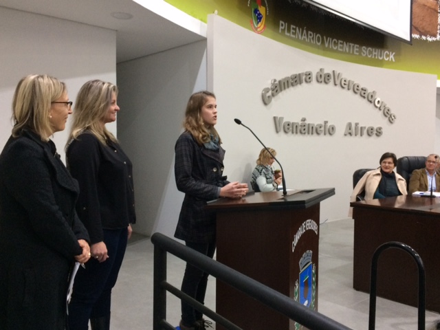 Stéfany, falando em inglês na tribuna da Câmara, destacou a importância de ter sido selecionada para o intercâmbio. O Legislativo Municipal fará análise burocrática da solicitação e busca efetivar o auxílio. A vereadora Helena da Rosa (PMDB), presidente da Comissão de Educação, Indústria, Comércio e Turismo, elogiou a iniciativa e fomentou a proposta, em especial, as oportunidades ofertadas aos alunos da região.