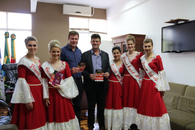 Soberanas do Município de Mato Leitão entregam o convite para o prefeito Giovane Wickert (PSB) e o vice Celso Kramer (PTB) para a 23ª Festa do Colono Imigrante de Mato Leitão que ocorre nos dias 23 e 25 de Julho no Ginásio Bonitão em Vila Arroio Bonito.