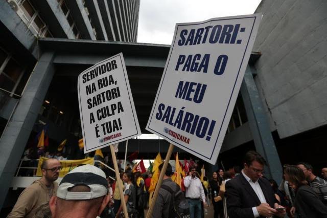 A Justiça do Rio Grande do Sul autorizou, por meio de liminar, que servidores com rendimentos parcelados não compareçam ao trabalho até que seus salários sejam integralmente quitados ou “ao menos, até alcançarem os depósitos o equivalente a um salário mínimo nacional (R$ 937,00)”, como pediu a Federação das Associações de Servidores Públicos (Fessergs) em mandado de segurança. A decisão, do desembargador Vicente Barroco de Vasconcellos, foi assinada na segunda-feira (11). Até segunda, o Estado havia depositado faixas que somaram R$ 1,2 mil. A primeira parcela foi paga em 31 de agosto: R$ 350 — a menor desde os primeiros parcelamentos. A Secretaria da Fazenda informou que quitou os salários dos servidores do Executivo estadual na quarta-feira (13). Com base no teor do despacho do magistrado e na quitação dos vencimentos dos funcionários públicos, a medida liminar perderia seu efeito em relação à folha de agosto, mas continua valendo para o caso de novos parcelamentos até que seja derrubada judicialmente.