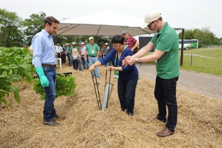 Outros programas relacionados à sustentabilidade do setor foram apresentados durante a manhã, seguidos por temáticas mais técnicas. A manhã também contou com uma sessão de pôsteres e após o almoço o grupo de cerca de 250 pessoas partiu para visitas em três propriedades rurais de Santa Cruz do Sul, Vale do Sol e Vera Cruz. As visitas ocorreram alternadamente e tiveram como objetivo demonstrar in loco aspectos relacionados à produção de tabaco, como o uso de técnicas conservacionistas, tal como o uso do plantio direto que vem crescendo muito no Brasil e já corresponde a 70%. Também foram apresentados os diferentes sistemas e unidades de cura do tabaco, técnicas de produção e manejo de mudas, práticas de incentivo ao reflorestamento e preservação de matas nativas, e orientações ligadas à saúde e segurança do produtor, como o uso do EPI e da vestimenta de colheita, além do depósito e descarte das embalagens de agrotóxicos.