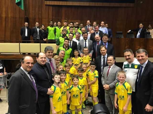 Os deputados Frederico Antunes (PP), Edson Brum (PMDB), Lucas Redecker (PSDB) e Gilmar Sossella (PDT) se pronunciaram durante a solenidade e todos evidenciaram os feitos e a história de dedicação e esforço do clube de Venâncio, que teve seu time de futsal fundado em 2002.