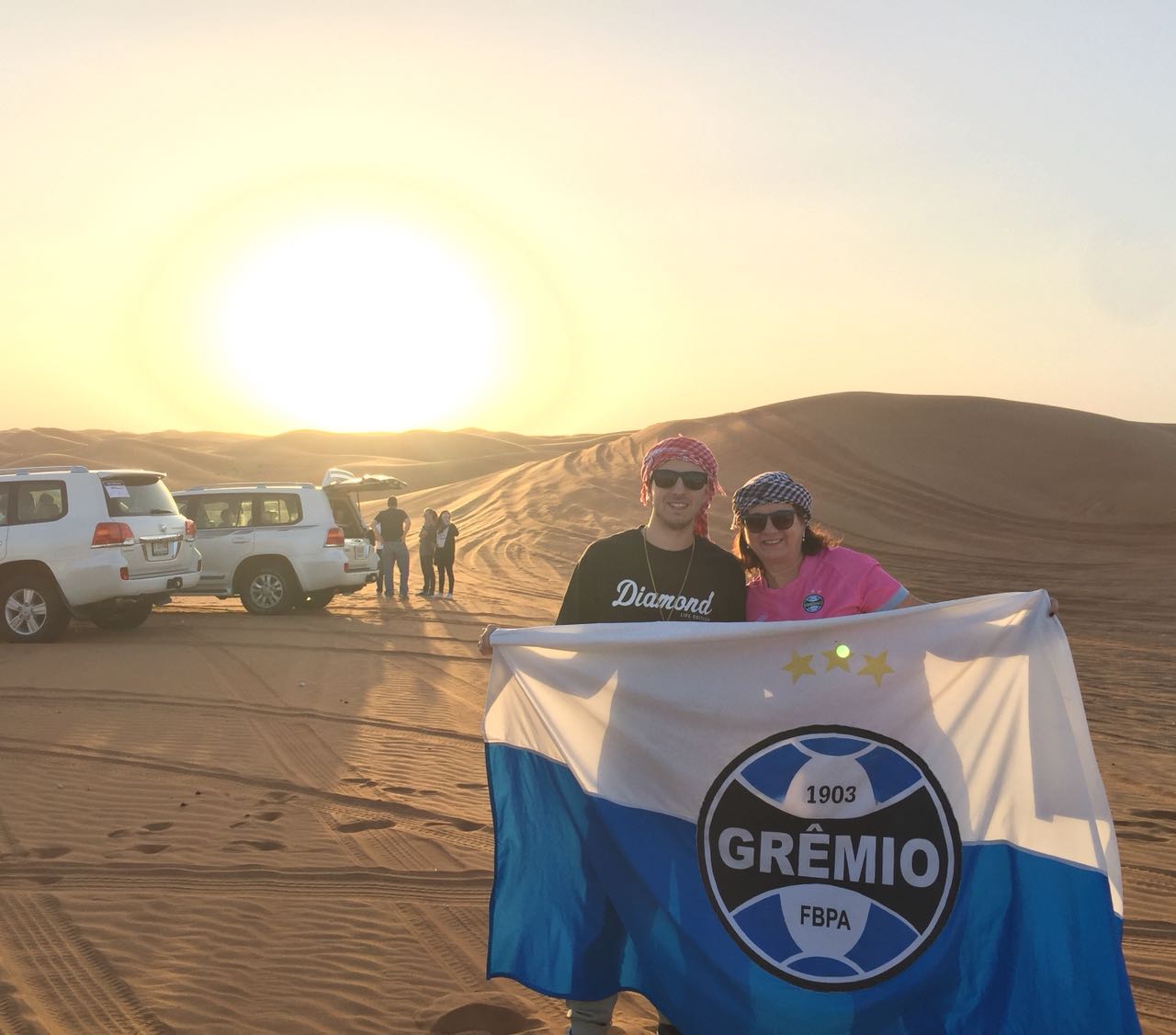 Os venâncio-airenses Melita Fanck e seu filho José Roberto acompanham a final do mundial de clubes em Dubai. Eles embarcaram rumo aos emirados árabes para torcer pelo Grêmio neste sábado, 16.