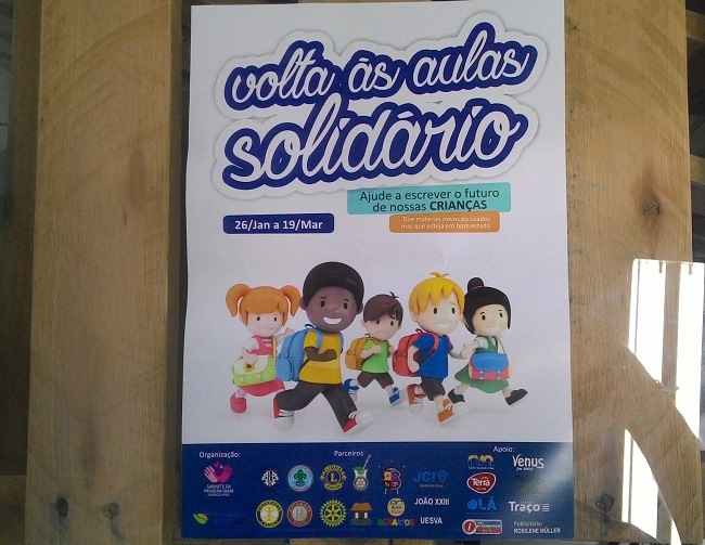 No dia 18 deste mês, o Gabinete da Primeira Dama inicia a campanha ” Volta às aulas solidário”, o projeto irá arrecadar em pontos parceiros materiais escolares novos e usados para serem doados para escolas e crianças. Para receber o kit escolar os alunos devem se inscrever nas escolas participantes.
