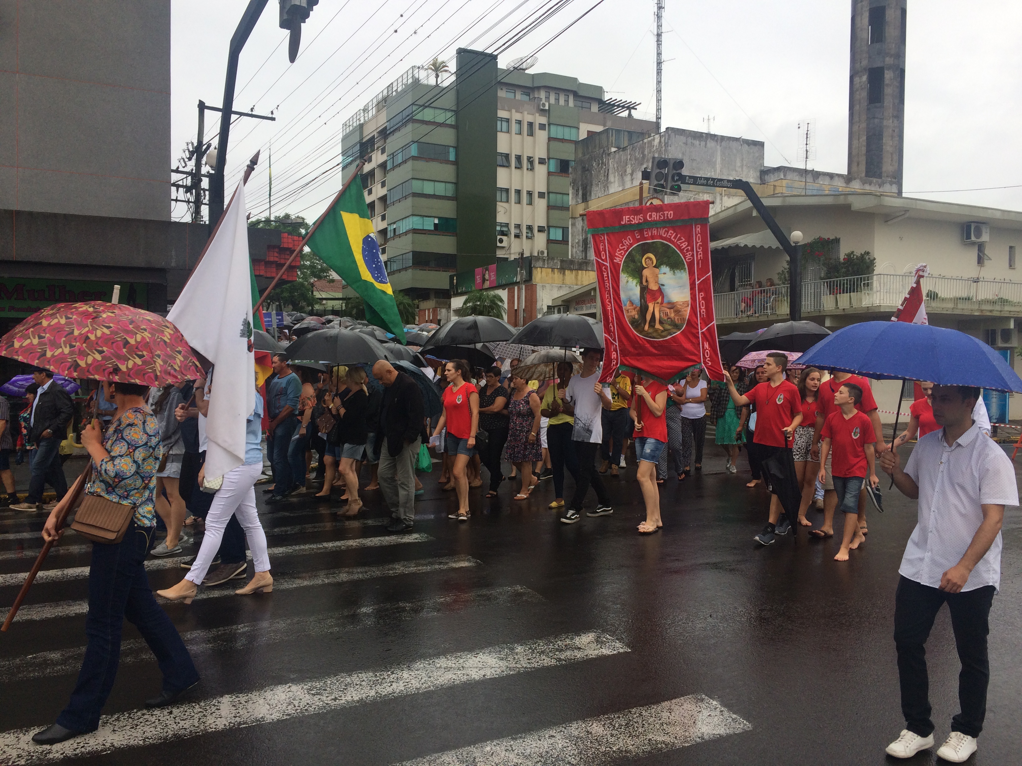 A procissão percorreu as principais ruas da área central. A última vez que os fiéis foram acompanhados pela chuva durante a caminhada religiosa foi em 1994.