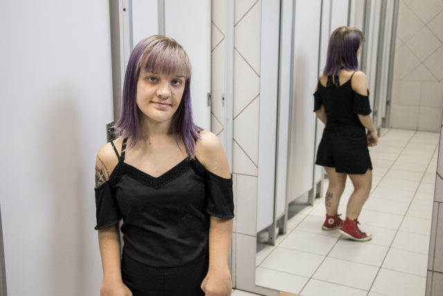 Gabriela Richter é funcionária da Instituição e estudante de Sistemas de Informação. Com 1,40 m de altura, ela explica que antes tinha dificuldade para se enxergar nos espelhos dos banheiros, pois ficam acima da pia, o que possibilitava a visão parcial do próprio rosto. Colocados na vertical, os novos espelhos instalados auxiliam pessoas com baixa estatura ou cadeirantes. “Não sabia que os os novos espelhos instalados tinham esse propósito. A Instituição abrange vários tipos de pessoas, não há um público específico, e conseguir uma forma de incluir todos é muito legal. Agora é bem melhor, consigo usar os espelhos tranquilamente”, afirma.