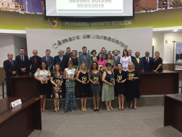 A noite desta segunda-feira foi especial na Câmara de Vereadores. A primeira sessão solene de 2018 foi realizada para marcar o Dia Internacional da Mulher, celebrado em 08 de março. O Legislativo concedeu à oito mulheres do município, o troféu Câmara Destaque, por seu envolvimento no empreendedorismo.