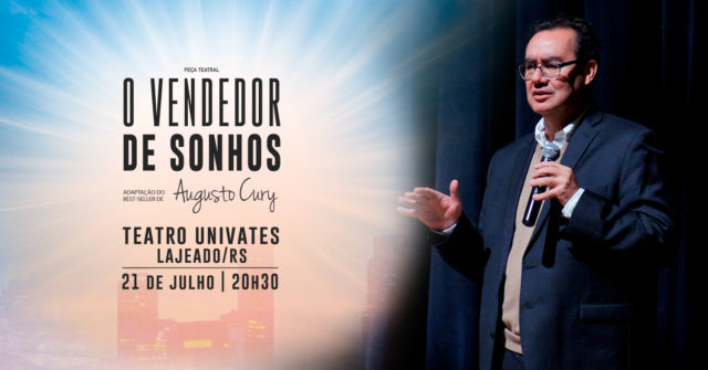 A narrativa do livro “O Vendedor de Sonhos” ganha espaço no Teatro Univates na noite deste sábado, dia 21. O espetáculo, baseado no livro de Augusto Cury – aclamado como um dos maiores escritores da atualidade -, é uma releitura da obra do professor, médico e palestrante. O texto para o teatro, inédito, foi adaptado pelo próprio Cury, em um trabalho em conjunto com Cristiane Natale e Erikah Barbin.