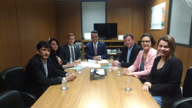 A equipe de Venâncio Aires, formada pelo prefeito, secretário de Habitação e Desenvolvimento Social, José Arnildo Camara (PTB), secretária de Planejamento, Jalila Böhm Heinemann, coordenadora da Central de Projetos, Marilini Petry e a presidente do Legislativo Municipal, Sandra Wagner (PSB), se reuniu com Gilmar Santos, secretário de Desenvolvimento Urbano do Ministério das Cidades.