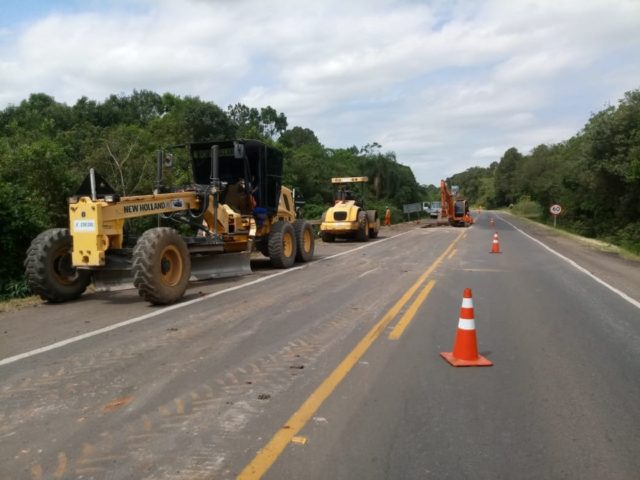 No momento estão sendo feitos reparos profundos no km 95, em Santa Cruz do Sul, além de recapeamento entre o km 147 ao 150, em Candelária. Para as próximas semanas estão programados serviços de reparos profundos e recapeamento no trecho do km 92 a 97.