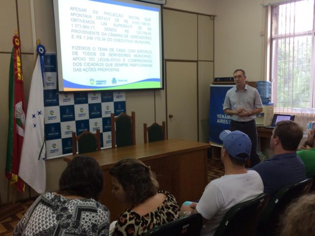 Na tarde desta sexta-feira, 18, o Governo Municipal de Venâncio Aires divulgou o resultado financeiro de 2018. O balanço foi apresentado após encerramento das contas do Município. Apesar da projeção inicial do orçamento municipal com déficit de R$ 9.931.748,00 as contas públicas registraram sobra orçamentária no ano. O superávit foi de R$ 1.373.969,00. O resultado foi apresentado pelo secretário municipal da Fazenda, Eleno Stertz, durante coletiva de imprensa.