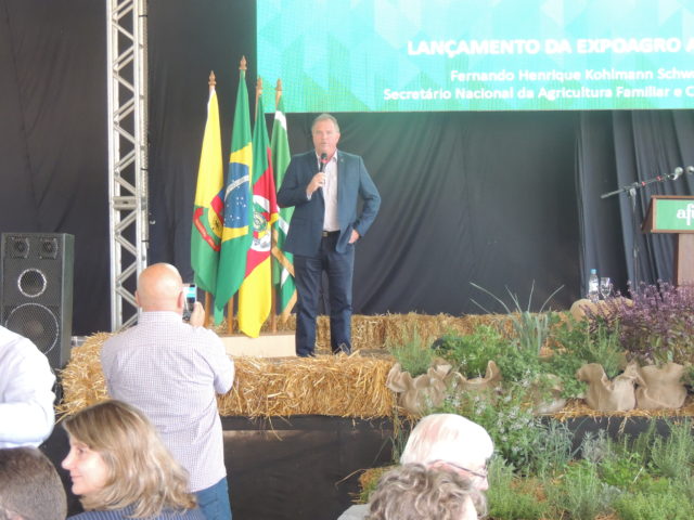 LANÇAMENTO – A solenidade do lançamento oficial da 18ª Expoagro Afubra reuniu nesta sexta-feira, dia 1º, diversas autoridades, representantes do agronegócio e patrocinadores do evento. O presidente do Sindicato Interestadual da Indústria do Tabaco (SindiTabaco) e diretor presidente do Instituto Crescer Legal, Iro Schünke, participou do ato que contou com palestra do secretário da Agricultura Familiar e Cooperativismo do Ministério da Agricultura (Mapa), Fernando Schwanke. Com o tema “Pequenos produtores, grandes produções”, Schwanke apresentou um panorama da agricultura familiar no Brasil e no mundo. A programação oficial da feira pode ser conferida no site www.afubra.com.br/expoagro.
