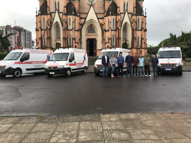 Nesta manhã, 8, o Prefeito Giovane Wickert reuniu as quatro ambulâncias em frente ao cartão postal do Município: A Igreja de São Sebastião Mártir. Acompanhado do Vice-Prefeito Celso Kramer, Wickert agradeceu ao Deputado Danrlei de Deus (PSD), no ato representado pelo Vereador Zé da Rosa que articulou recursos com o Parlamentar para a compra de uma das ambulâncias, assim como o Deputado Jones Martins (PMDB) que atendeu ao pedido do empresário Luis Carlos Ramos da Silva, ambos foram representados pelo Secretário de Desenvolvimento Econômico, Trabalho e Turismo Nilson Lehmen. Os parlamentares enviaram recursos federais para que fosse possível que duas novas ambulâncias chegassem à Venâncio.