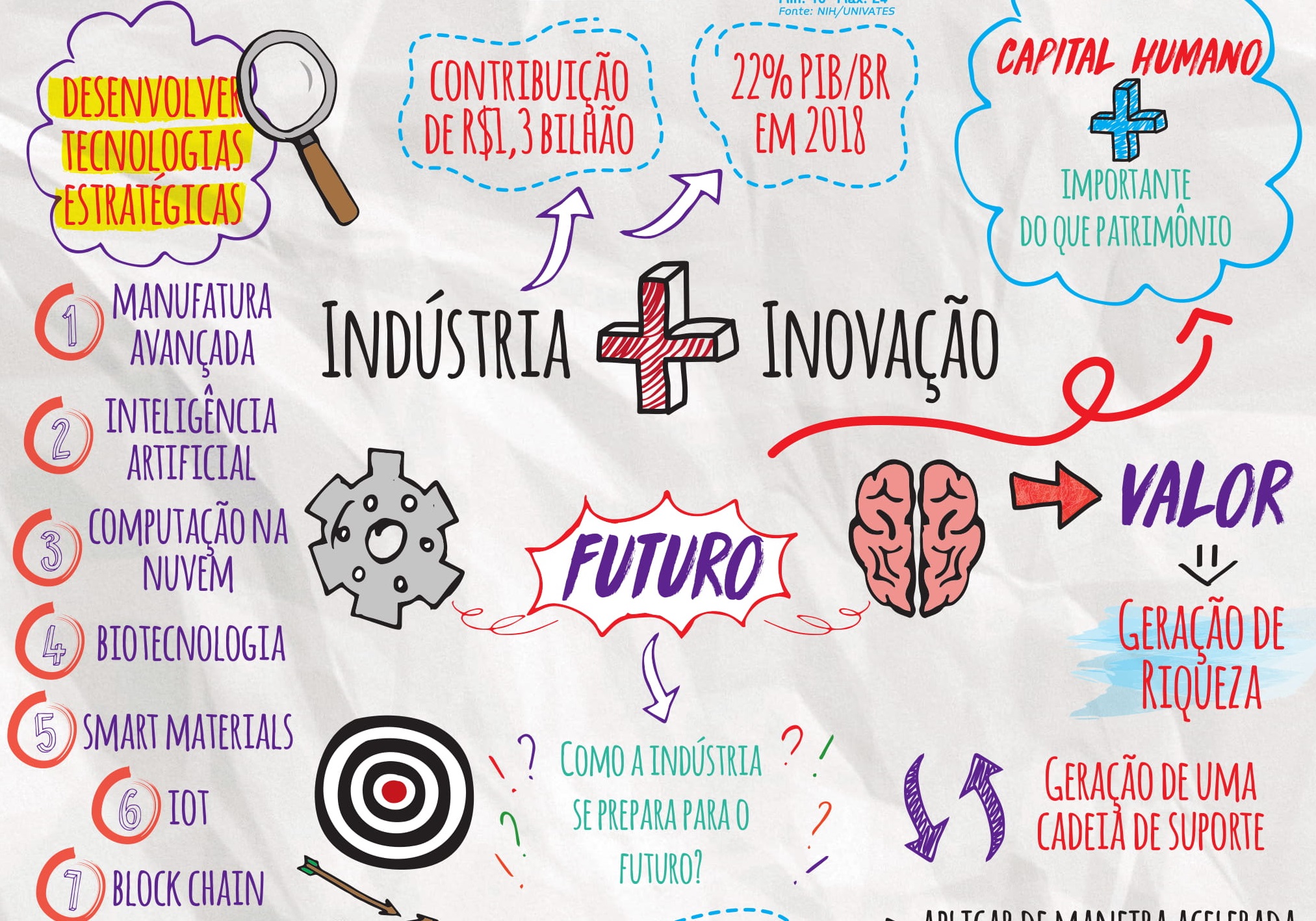A indústria, setor que hoje representa 22% do PIB do Brasil, vê-se desafiada a fazer a transição para o novo modelo de negócios do século 21 onde o conhecimento e a tecnologia assumem o papel central na geração de valor e riqueza. Este gigante, que contribui com R$ 1,3 bilhão para a economia do país, ainda está alicerçado em processos tradicionais onde os ativos físicos, por exemplo, são considerados a riqueza da empresa.