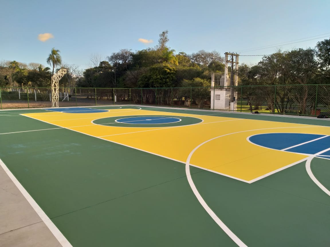 As obras iniciaram em novembro do ano passado. A quadra terá a mesma demarcação para a prática esportiva de futsal, vôlei e basquete.