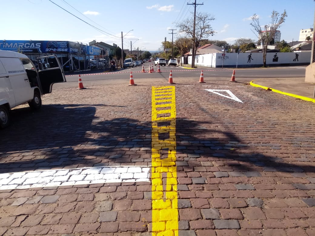 A equipe de sinalização da Secretaria de Infraestrutura e Serviços Públicos (SISP) juntamente com o Departamento de Trânsito finalizam nesta quarta-feira, 04, o trabalho de colocação de uma nova rótula na Júlio de Castilhos esquina com a Armando Ruschel. As sinalizações estão tanto na pista, quando nas placas em todos os lados do cruzamento.