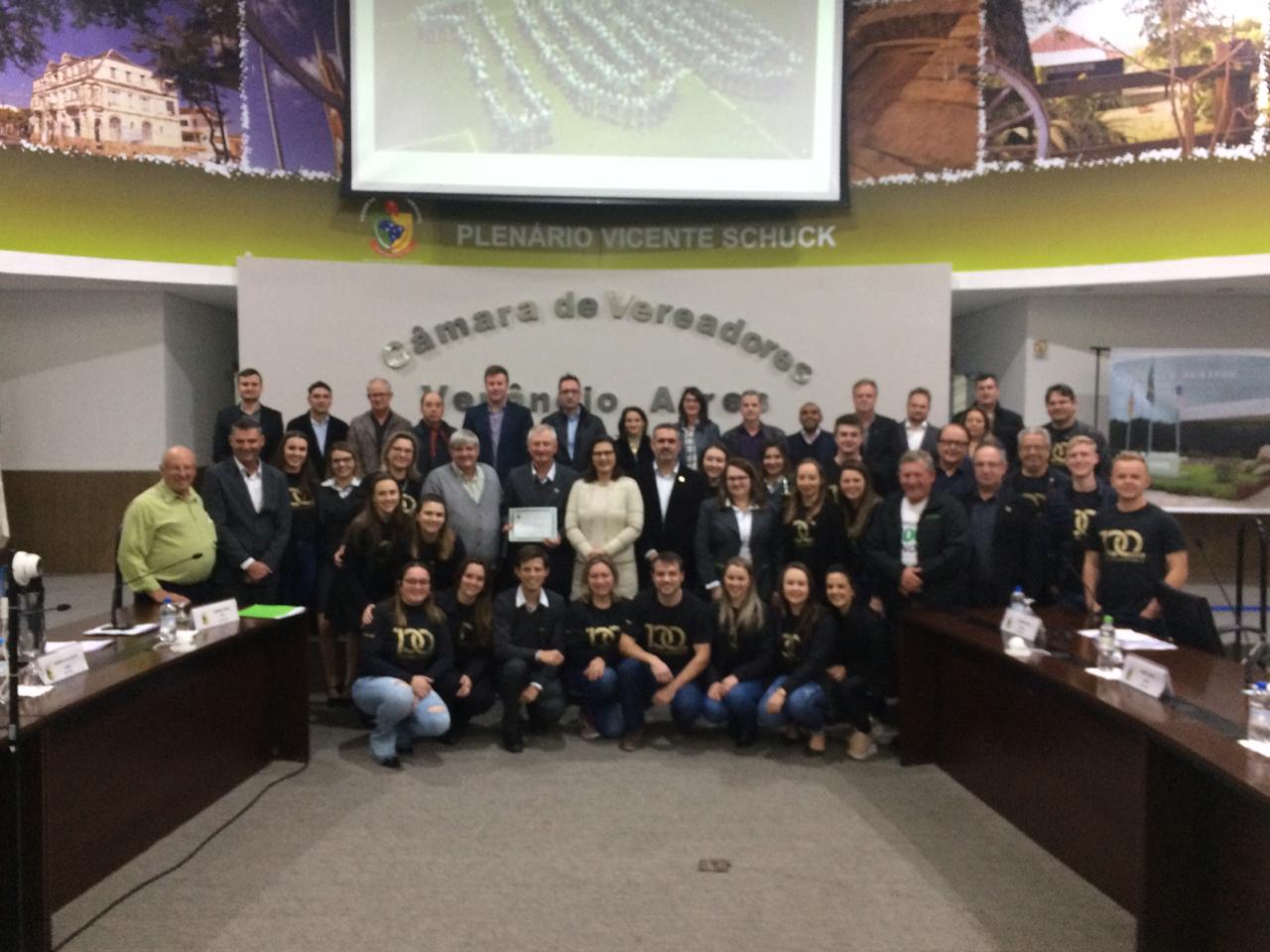 O Legislativo Municipal prestou homenagem a Cooperativa Sicredi Vale do Rio Pardo pela passagem dos 100 anos. O reconhecimento foi proposto pelos vereadores Sandra Wagner (PSB) e Adelânio Ruppenthal (PSB). Nesta segunda-feira, 23, os parlamentares entregaram certificado de reconhecimento aos representantes da cooperativa.