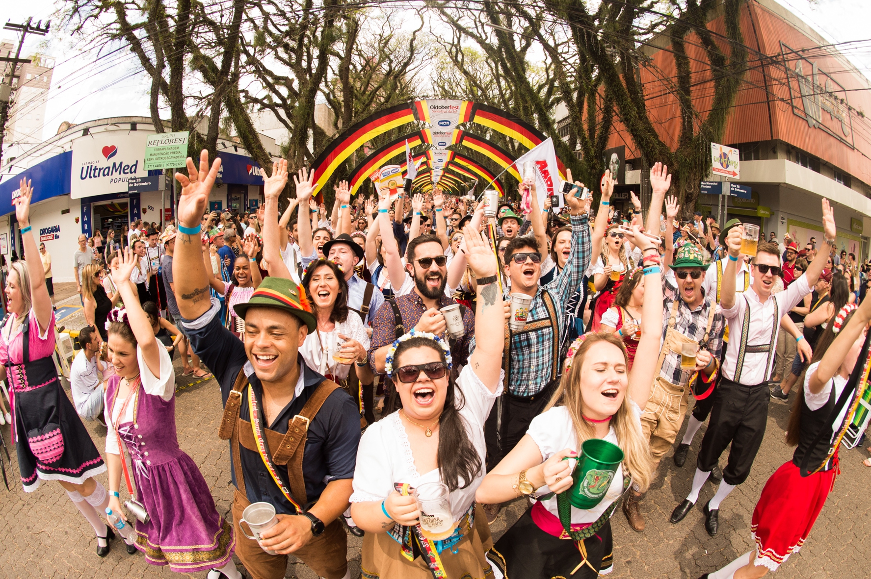 Atrações – Em destaque também estarão as bicicletas Zig Zag Zug que, desta vez, abrem o desfile em grande estilo. A novidade deste ano, a Beer Bike – Bicicleta da Cerveja, também marca presença. Inventada em 1997 na Holanda e parecida com bondes do início do século 20, tem capacidade para até 16 passageiros. A animação ficará novamente a cargo de uma banda fixa, com sonorização em toda a extensão da atração. Além disso, 16 bandinhas típicas serão responsáveis pela musicalidade de cada alegoria. O atrativo ainda vai contar com a presença da Coordenação Executiva da 35ª Oktoberfest, ex-soberanas, ex-presidentes do evento, Fubica do Fritz, turistas, grupos de danças, associações comunitárias, entidades sociais e empresariais, 7º Batalhão de Infantaria Blindado (BIB), centros culturais, Santa Ciclismo e funcionários das empresas patrocinadoras.
