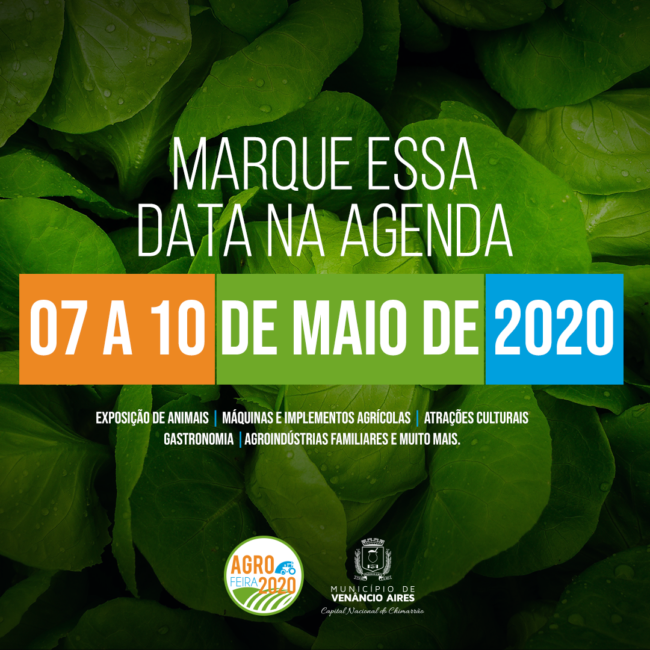 “Diversificar para garantir o desenvolvimento rural” é o tema escolhido para a 2ª edição da Agrofeira em Venâncio Aires. O campo e o produtor rural são peças fundamentais para o desenvolvimento e o crescimento da Capital do Chimarrão, que colonizada por imigrantes alemães em sua grande maioria, irá exaltar pelo segundo ano o trabalho dos homens e das mulheres do campo no mês de maio de 2020. Uma parceria entre a Secretaria de Desenvolvimento Rural, EMATER/ASCAR, Sindicato do Trabalhador Rural e o Sindicato Rural idealizou a Agrofeira em 2018 que foi destaque regional levando centenas de pessoas ao Parque do Chimarrão.