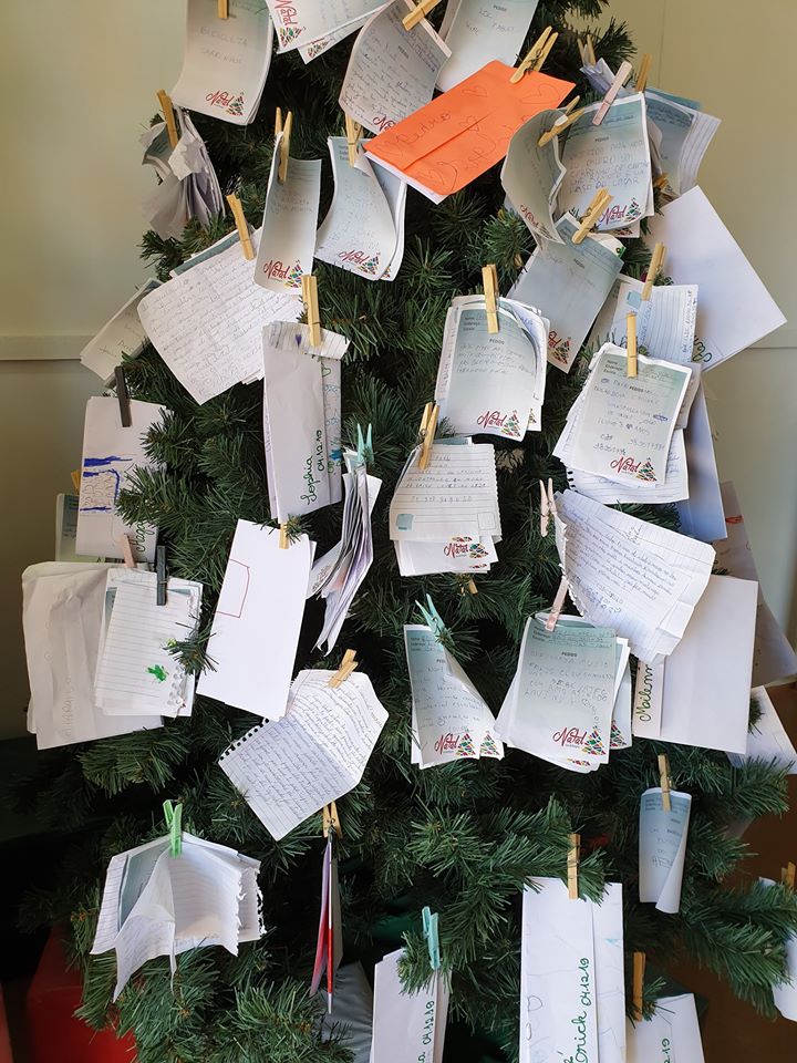 Ao longo das noites um voluntário ajuda as crianças e adultos que queiram deixar pedidos na árvore.