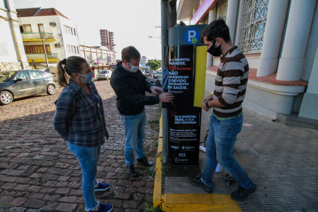 Além disso, durante o dia, oito parquímetros no Centro da cidade receberam adesivação especial. Nas estruturas foram afixadas peças publicitárias que trazem informações mostrando a importância da Casa de Saúde à comunidade, além de dados de como ajudar a Instituição. A ação foi realizada pela Administração Municipal, através da Secretaria Municipal de Desenvolvimento Econômico, Hospital, Rek Parking e Won Comunicação. Os demais 12 equipamentos também terão o novo layout nos próximos dias.