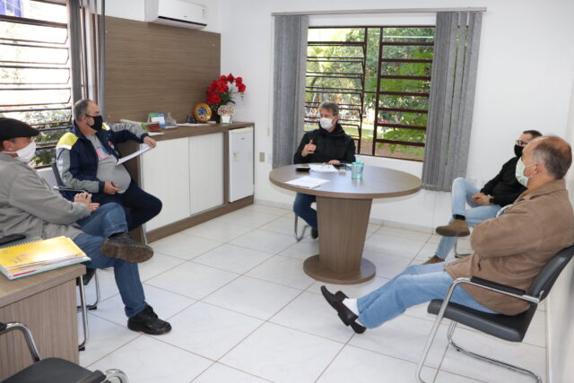 O formato do novo edital envolvendo recolhimento, transporte e destino final de resíduos sólidos domiciliares e comerciais foi tema de uma reunião entre o prefeito Carlos Alberto Bohn, Chefe de Gabinete Evandro Lenhart, secretário da Agricultura e Meio Ambiente João Carlos Machry, diretor de Meio Ambiente Luiz Antônio Lopes e Antônio Augusto Machado da empresa Engebio Ambiental.
