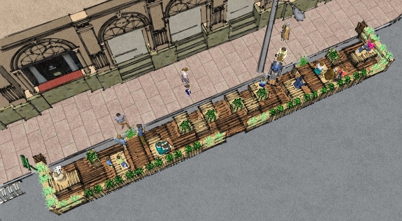 São extensões das calçadas que promovem o uso democrático do espaço público e que ocupam normalmente o lugar de uma ou duas vagas de estacionamento. Além da bela estrutura que será montada que favorecerá o local, contribui culturalmente para fomentar e estimular a visitação ao Museu Municipal e ao Centro de Atendimento ao Turista (CAT) pós Pandemia Covid-19.