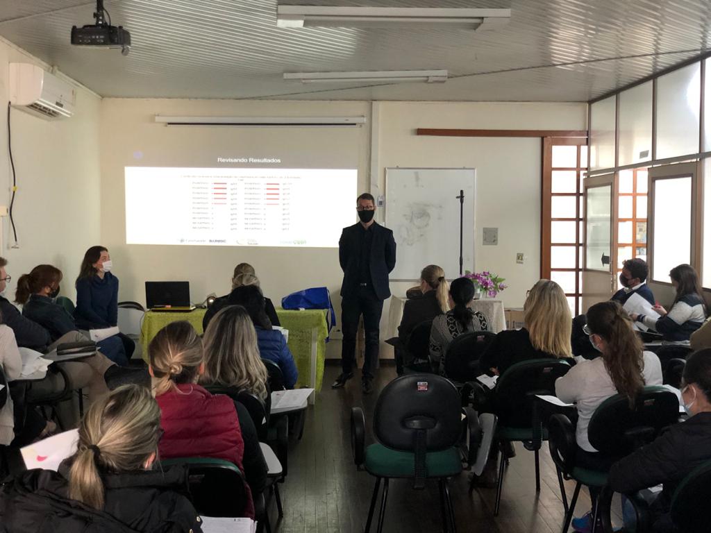 Na tarde de sexta feira, 17, profissionais de enfermagem da rede municipal de saúde de Venâncio e também de Mato Leitão estiveram reunidos em treinamento para a aplicação dos testes rápidos da pesquisa de soro prevalência da Covid-19 que será realizada pelo Consórcio Intermunicipal de Serviços do Vale do Rio Pardo (Cisvale) em parceria com a Unisc no município a partir do primeiro fim de semana de agosto.