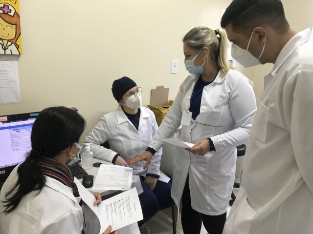 As profissionais do Setor de Epidemiologia da Secretaria de Saúde de Venâncio iniciaram na manhã desta segunda-feira, 27, a capacitação e a testagem dos profissionais das unidades básicas de saúde do Município. Ao longo da semana, todos os postos receberão a visita das técnicas de enfermagem, que orientam os responsáveis pelos locais sobre a realização dos testes rápidos, que estarão à disposição da comunidade na próxima semana. Além das informações, das testagens dos profissionais, também está sendo feita a entrega dos kits nas respectivas unidades. Cerca de 300 profissionais devem ser testados ao longo desta semana.