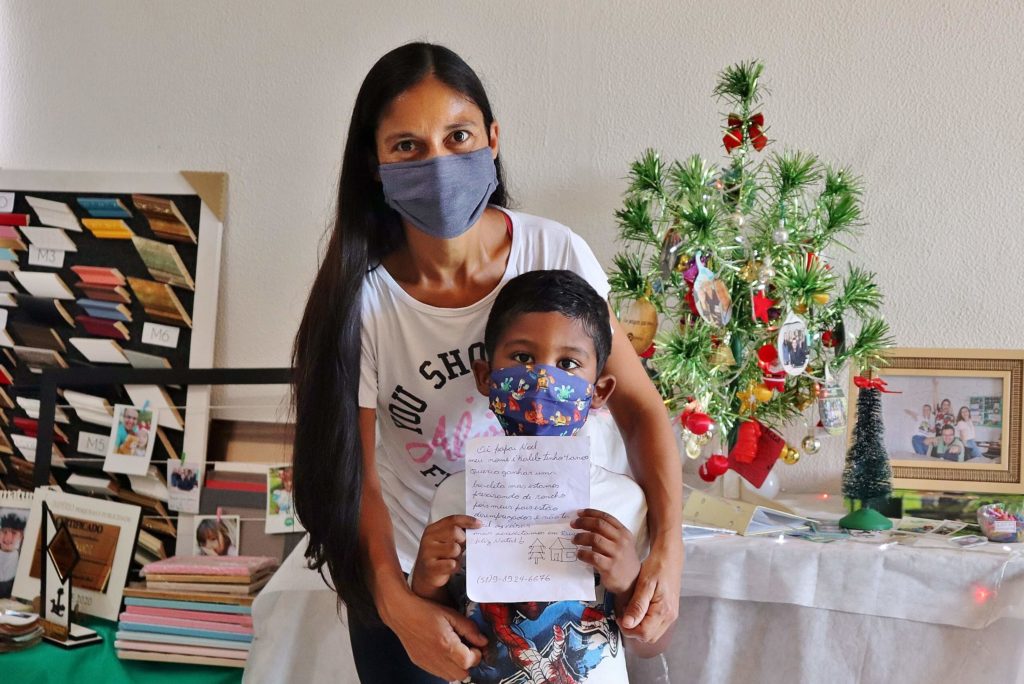 Na sexta-feira, 11, a primeira cartinha foi entregue. O pequeno Kaleb Marques Firminio e sua mãe, Gislaine Marques Marciel Firminio trouxeram sua cartinha até o nosso escritório com pedido da tão sonhada bicicleta. A mãe, que é dona de casa, conta que já deixaram cartinhas nos outros anos na árvore que ficava ao lado da casinha e foram ajudados com ranchos de alimentos.