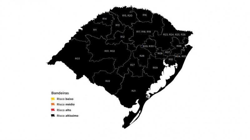 Pela primeira vez, todo o Rio Grande do Sul foi classificado em bandeira preta e, a partir deste sábado (27/2), todas as 21 regiões Covid terão de obedecer aos protocolos determinados pelo Estado – pois a cogestão regional foi suspensa pelo menos até o dia 7 de março devido ao agravamento da pandemia.