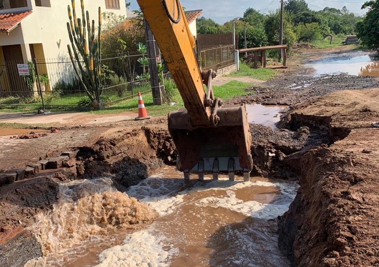 A Corsan trabalha em reparos de adutora no bairro Morsch, após rompimento da estrutura na manhã de hoje. Com isso, os bairros Centro, Morsch, Santa Tecla, São Francisco Xavier e União terão o abastecimento afetado. A previsão da companhia é de normalização do fornecimento de água até as 20h desta terça-feira, 16.