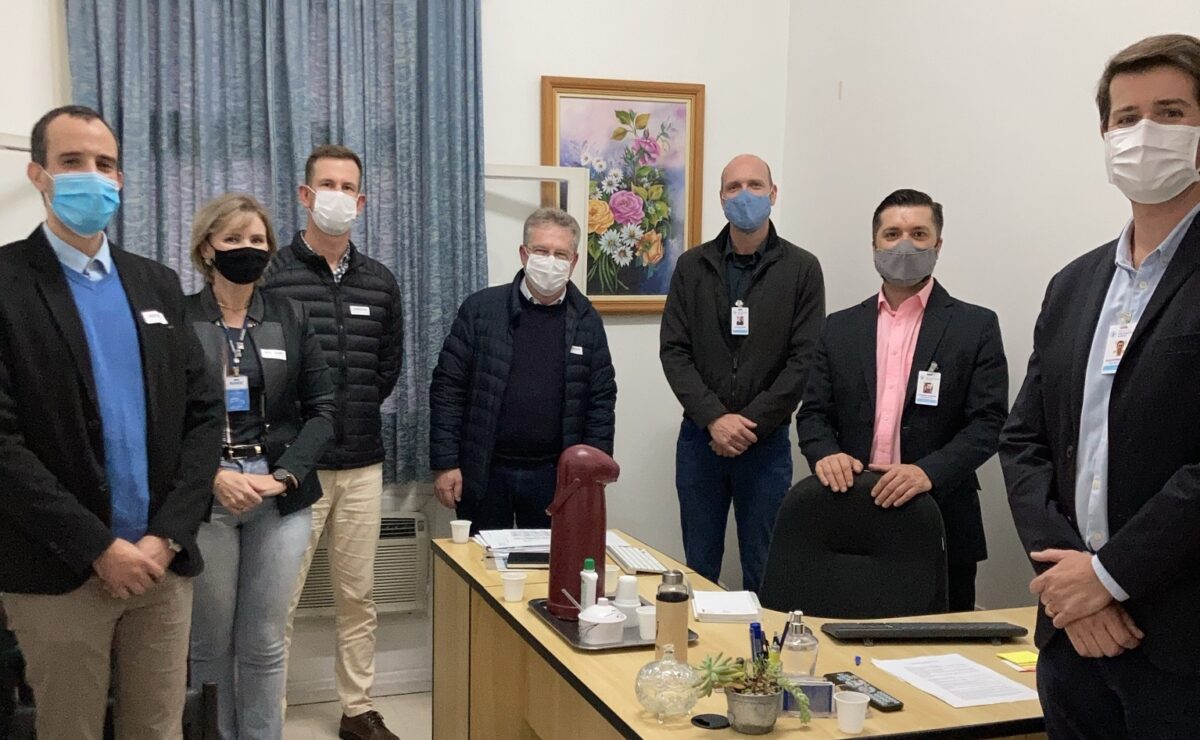Para discutir as propostas, estiveram presentes, por parte da Unisc, o Diretor-Administrativo do Hospital Santa Cruz, Egardo Kuentzer, o professor do curso de Medicina, Dennis Baroni Cruz; o Assessor Administrativo do Centro de Diagnóstico e Intervenção por Imagem do Hospital Santa Cruz, Felipe dos Santos; e a Assessora de Prestação de Serviço, Patrícia Maria Konzen Klamt. Os representantes da Unisc foram recebidos pelo Presidente do HSSM, Luciano Spies; pelo Diretor-Administrativo, Fernando Siqueira; e pelo Diretor-Clínico, Guilherme Furst do HSSM.