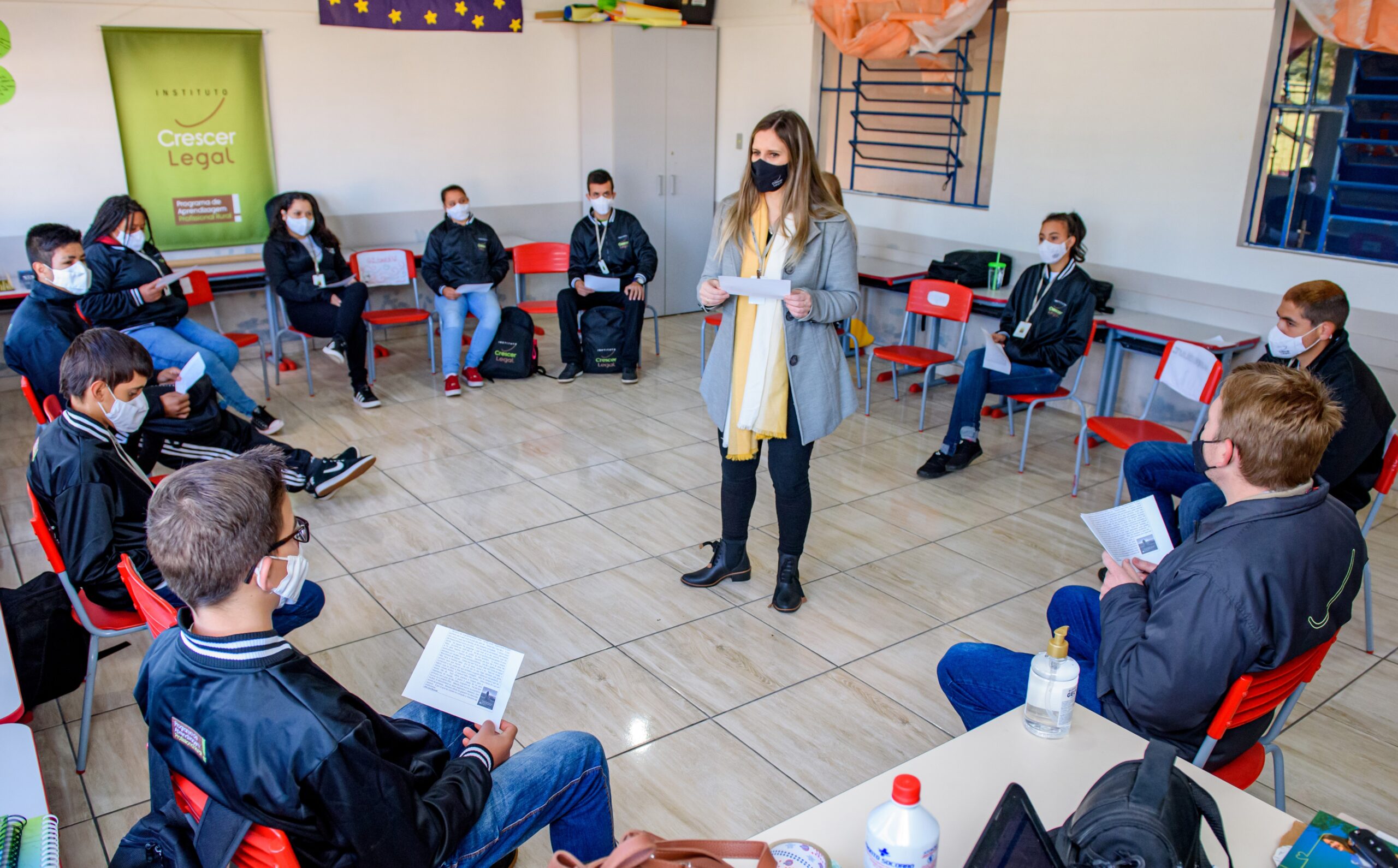 Depois de fazer ajustes significativos no formato do seu curso de aprendizagem em Gestão Rural e Empreendedorismo em razão da pandemia, as atividades presenciais realizadas no contraturno escolar estão pouco a pouco sendo retomadas pelo Instituto Crescer Legal. As turmas de Cerro Branco, Sinimbu, Boqueirão do Leão, Passo do Sobrado e Santa Cruz do Sul já estão atuando no formato híbrido, seguindo todos os protocolos sanitários exigidos.