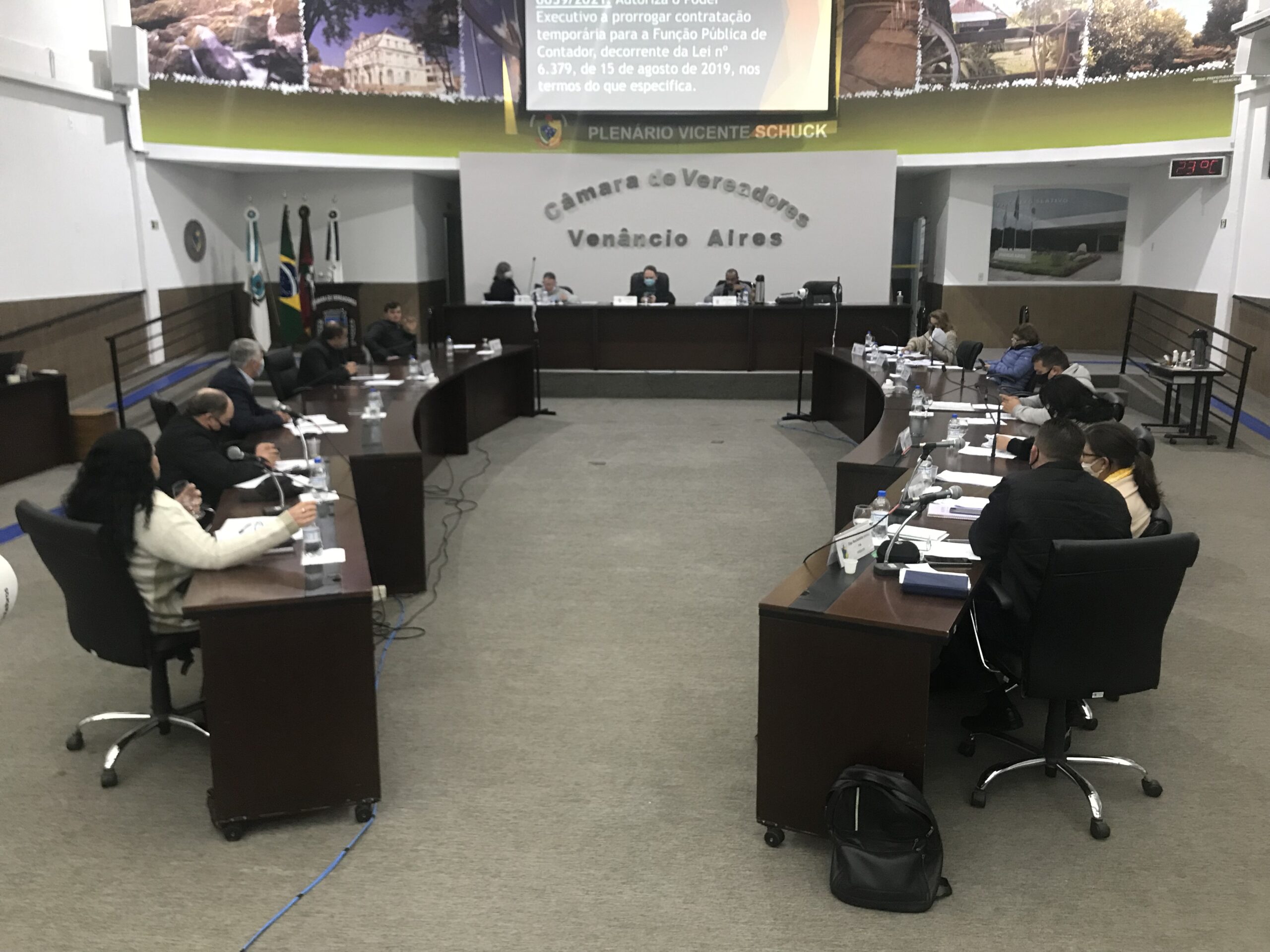 A sessão da Câmara de Vereadores nesta segunda-feira, 21, contou com análise de 20 matérias na pauta de votações. As principais envolvem autorizações para contratações temporárias na Prefeitura de Venâncio Aires. As matérias foram aprovadas de forma unânime na sessão ordinária desta semana. A primeira autoriza a contratação de dois Técnicos de Enfermagem, com 40 horas semanais e contrato até o fim do ano. O salário será de R$ 3.087,94.