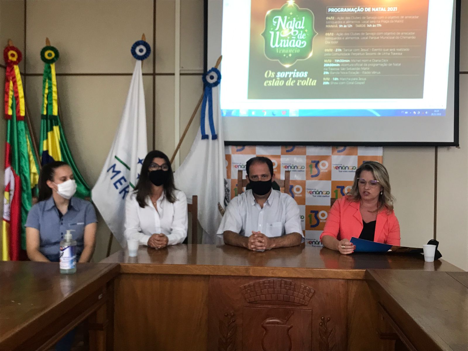 A Prefeitura de Venâncio Aires apresentou na tarde desta sexta-feira, 26, a programação do Natal de União. O projeto é liderado pelo Gabinete da Primeira-Dama, e neste ano conta com parceria da Corsan e Caravana Luzes de Natal. Com o slogan “Os sorrisos estão de volta”, as atividades iniciam no próximo dia 04. A montagem da decoração está sendo realizada pelas equipes do Município.