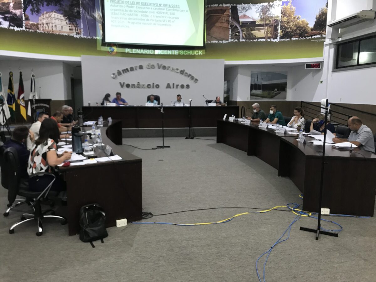 APROVADO POR TODOS OS VEREADORES O PROJETO DE LEI DO EXECUTIVO N° 0016/2022 que autoriza o Poder Executivo a celebrar Convênio com a organização da sociedade civil HOSPITAL SÃO SEBASTIÃO MÁRTIR – HSSM, e transferir recursos financeiros decorrentes da Portaria SES RS nº 907/2021 – Programa Assistir de Incentivos Hospitalares.