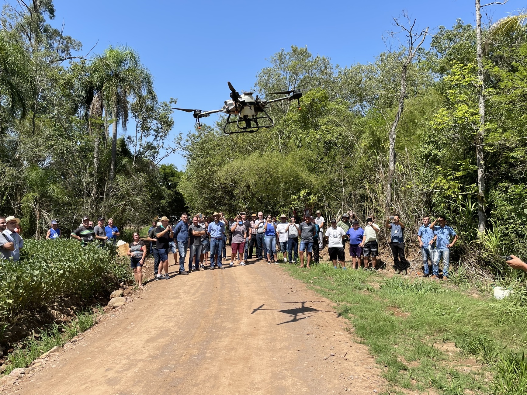 Na última quinta-feira, 24, o evento, em parceria com a Associação de Produtores de Arroio Grande, Olavo Bilac e Harmonia da Costa (Apagroh) e Rudan Agrotecnologia, reuniu mais de 100 produtores em Venâncio Aires, na sede da Associação São João Bosco, na localidade de Linha Olavo Bilac. O encontro que iniciou às 9 horas também contou com a presença de autoridades e lideranças, como o prefeito Jarbas da Rosa, secretários municipais, vereadores, presidentes de sindicatos, entre outros. Na ocasião, os irmãos Arnildo e Alex Aretz, de Vera Cruz, demonstraram o funcionamento do drone pulverizador na agricultura, financiado pela cooperativa, que tem atendido produtores de toda a região de forma terceirizada com a empresa Agro 4.0. “Somente no último mês, foram 260 hectares de lavouras pulverizadas com o drone”, destacou Alex.
