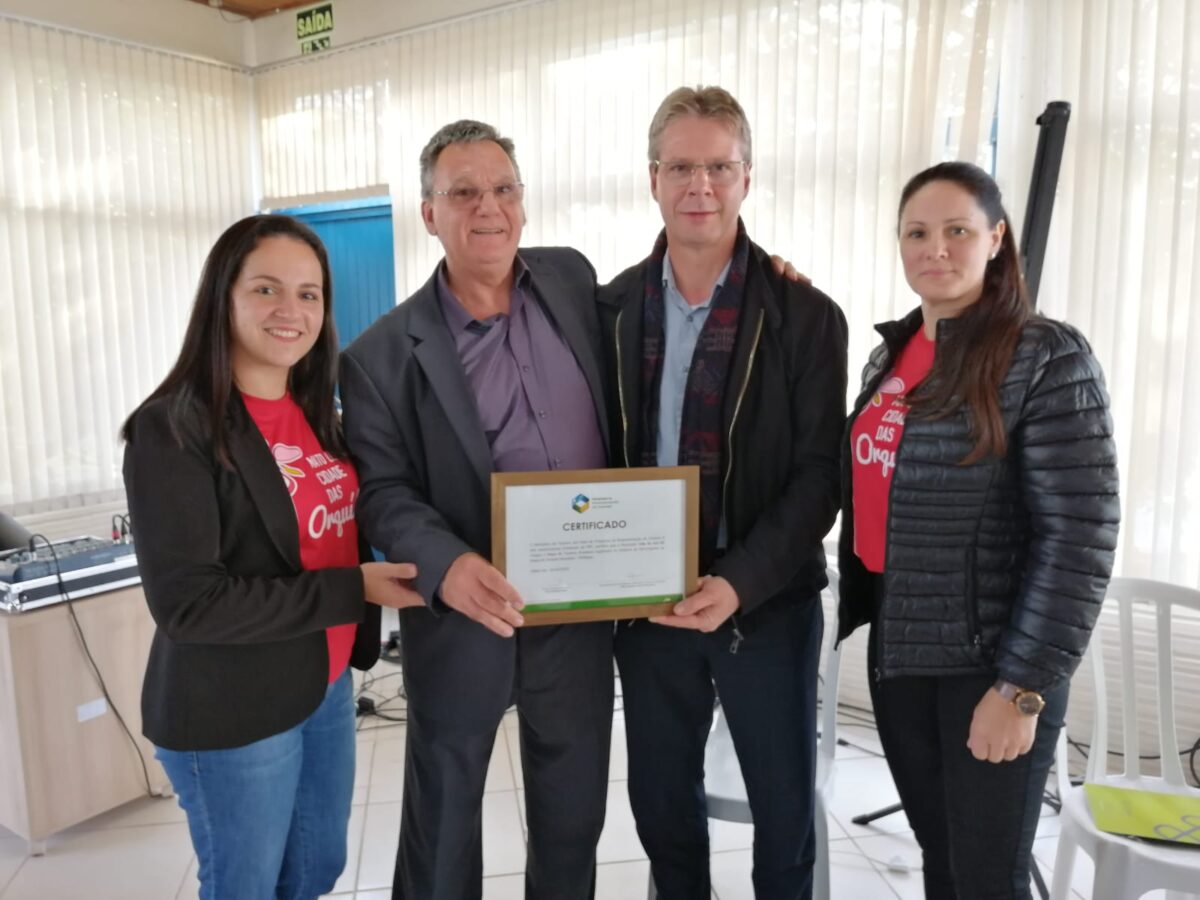 O presidente da entidade, Djalma Ernani Marquardt, fez a entrega dos certificados aos municípios durante a Fenachim na última sexta-feira, 6 de maio, em Venâncio Aires. Mato Leitão esteve representado pelo prefeito Carlos Alberto Bohn, secretária de Finanças, Viviane Marlise de Bittencourt, e coordenadora cultural Inês Kroth.