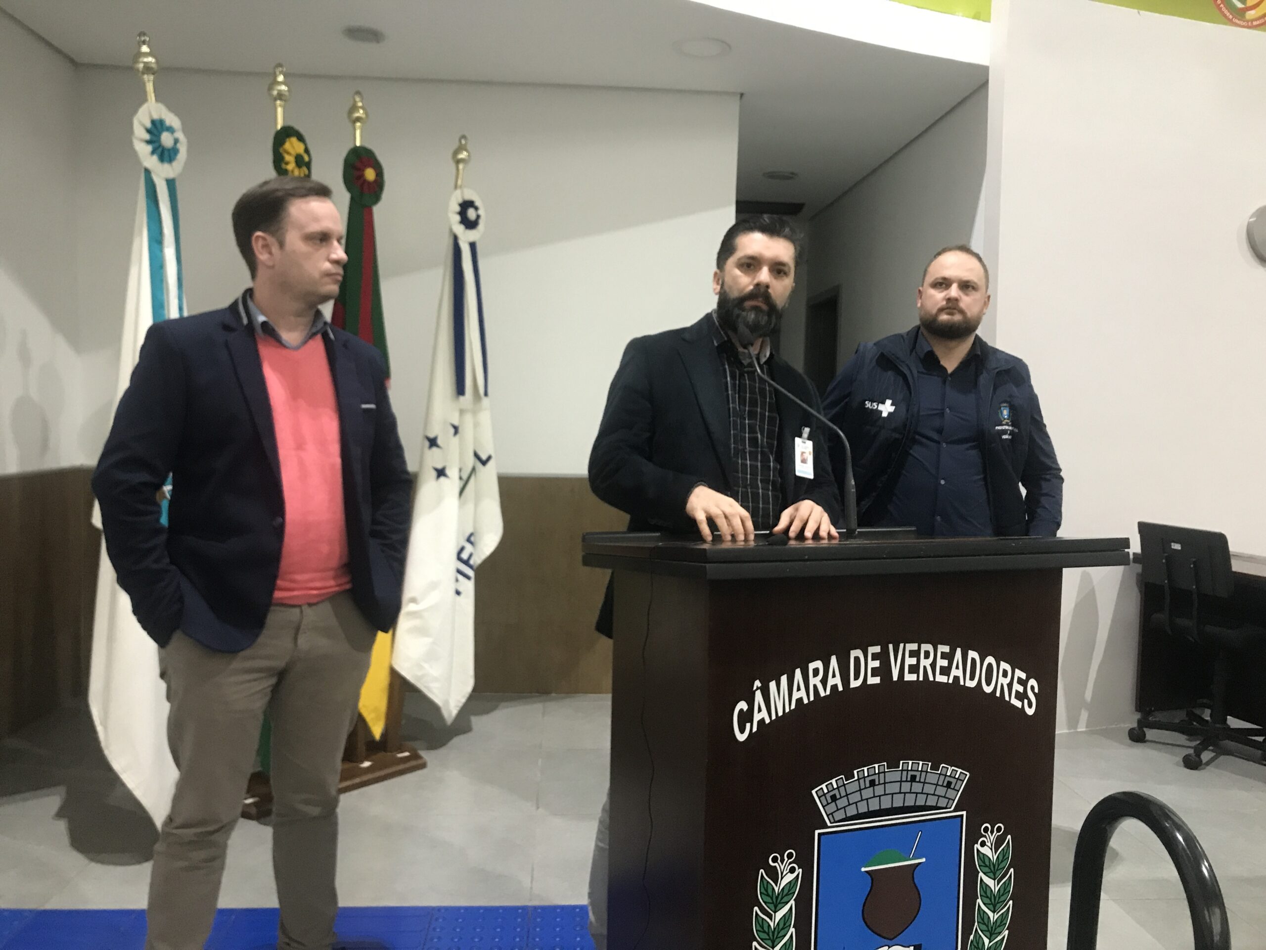 A tribuna da Câmara de Vereadores nesta segunda-feira, 04, foi ocupada por representantes do Hospital São Sebastião Mártir (HSSM) e da Secretaria Municipal de Saúde. A pauta foi a suspensão em julho dos atendimentos pediátricos para consultas particulares e por convênios. O assunto mobilizou as redes sociais no fim de semana, e pautou reunião entre familiares e parlamentares na parte da tarde. Durante as explicações sobre a situação, o secretário municipal de Saúde, Tiago Quintana (PDT), destacou que está nos planos da Administração Municipal a criação de um plantão pediátrico.
