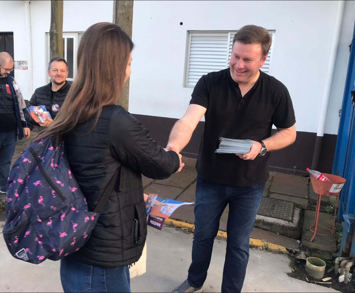 Nesta terça-feira, 27, o dia iniciou com panfletagem no portão de entrada da Metalúrgica Venâncio. E na sequência, na entrada da empresa Tramontini. Depois, o candidato visitou a empresa de calçados Mapello e a Sobremonte. Durante a tarde foi realizada uma caminhada com divulgação da campanha para as comunidades de Mariante e Estância Nova. (AI Candidato Giovane Wickert/PSB)