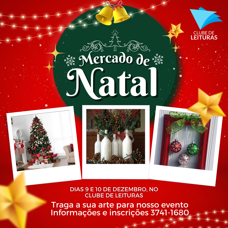 O Clube de Leituras realiza nos dias 9 e 10 de dezembro o Mercado de Natal, com comercialização de produtos do artesanato local, além de apresentações culturais.
