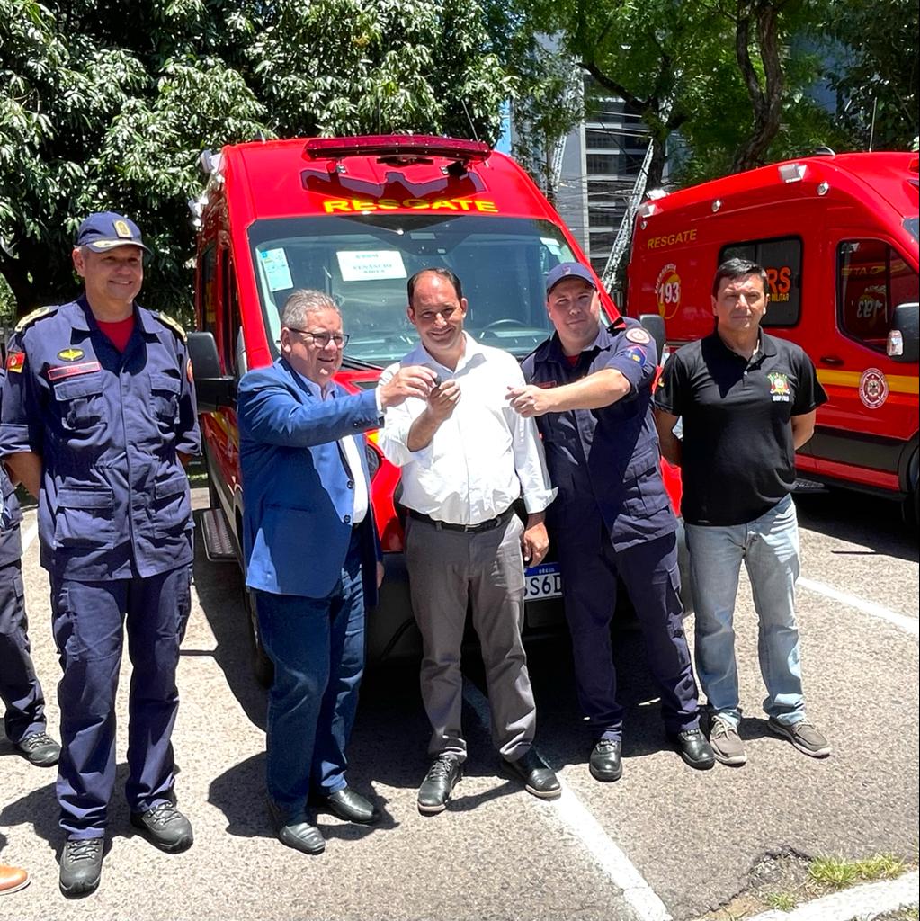 O Corpo de Bombeiros Militar (CBM) realizou nesta quinta-feira, 29, em Porto Alegre, solenidade para entrega de três viaturas ambulâncias para os municípios de Venâncio Aires, Rio Pardo e Santo Ângelo, além de escadas de grande alcance e kits de combate a incêndio florestal. O prefeito da Capital do Chimarrão, Jarbas da Rosa, participou do ato e recebeu o veículo venâncio-airense no valor de R$ 321,4 mil. A ambulância irá substituir o atual veículo Resgate do Corpo de Bombeiros, que possui mais de 20 anos de uso.