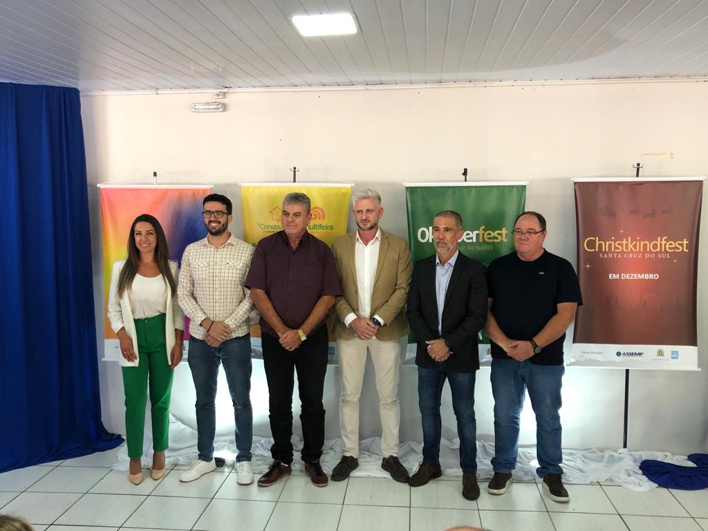 A Associação de Entidades Empresariais de Santa Cruz do Sul (Assemp) e o Município de Santa Cruz do Sul apresentaram nesta sexta-feira, 14, as lideranças que vão comandar as equipes organizadoras de quatro grandes eventos realizados em parceria em Santa Cruz: Semana do Empreendedor, Construarte e Multifeira, Oktoberfest e Feirasul e Christkindfest. Os nomes foram divulgados durante solenidade realizada no Espaço Assemp, no Parque da Oktoberfest, com a presença de autoridades, convidados e imprensa.