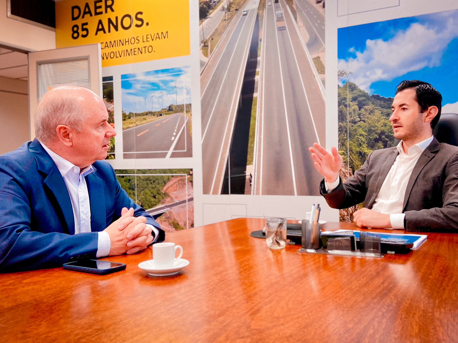 Na tarde desta quinta-feira, o Deputado Airton Artus, esteve em reunião com o engenheiro e diretor-geral do Departamento Autônomo de Estradas de Rodagem (DAER), Luciano Faustino.