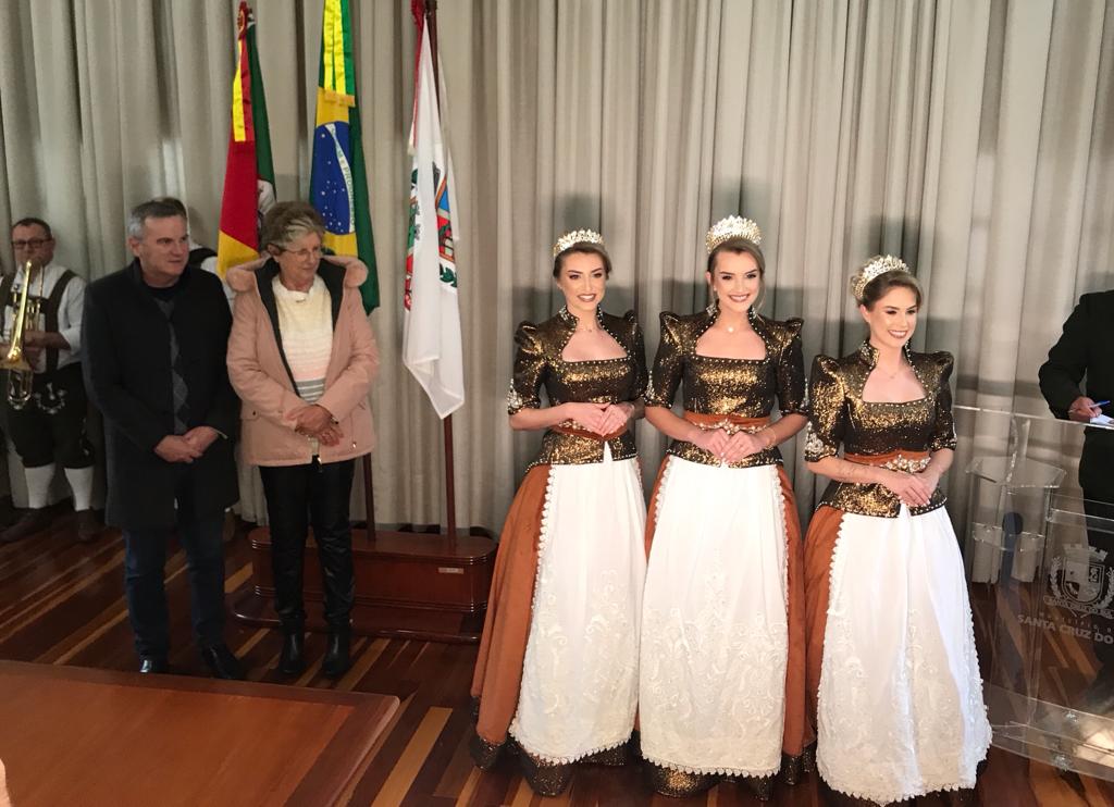 Entre os símbolos que marcam a Oktoberfest de Santa Cruz do Sul estão as histórias das tradições germânicas, que passam de geração para geração e se fortalecem com o passar dos anos. E são essas histórias que vêm desde os primórdios da imigração que inspiraram a criação dos trajes oficiais da 38ª Festa da Alegria. Em 2023, a rainha Camila Eduarda Schaefer e princesas, Marilia Fischer e Daniela Schoeninger, vão representar a maior festa alemã do Rio Grande do Sul com vestidos inspirados na história herdada dos colonizadores.